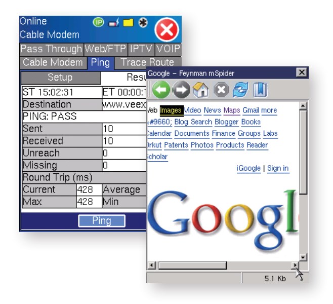 Equipado com DOCSIS 3.0 cable modem, o novo CX150-D3+ suporta upstream e downstream 8x4 channel bonding, endereçamento IPv6 e Advanced Encryption Standard (AES) usado em redes DOCSIS 3.0 de próxima geração. Emulação de Cable modem oferecida pelo instrumento fornece estatísticas importantes relativas a upstream e downstream, para servidores e video, Internet e tráfego VoIP. Serviços Triple Play podem ser verificados tanto na interface RF quanto na LAN, por meio do modo pass-through. A opção de visualização remota permite o monitoramento de resultados do retorno, pelo Sistema de headend CX180R.
